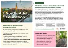 Adult education has traditionally focused on providing equal opportunities of education and learning for all, especially in the Nordic countries. Education has been considered as a public good, valuable in itself, a firm foundation for a democratic society and a source of opportunities for meaningful work. In today’s world we are facing multiple crises such as climate change, digital disruption/AI, disinformation, social polarization and involuntary migration. In these circumstances adult education and adult education research become more important than ever in addressing the aforementioned global challenges. Research based knowledge forms a solid basis for tackling these threats. Adult education and lifelong learning are crucial in educating citizens in facing these multiple challenges.